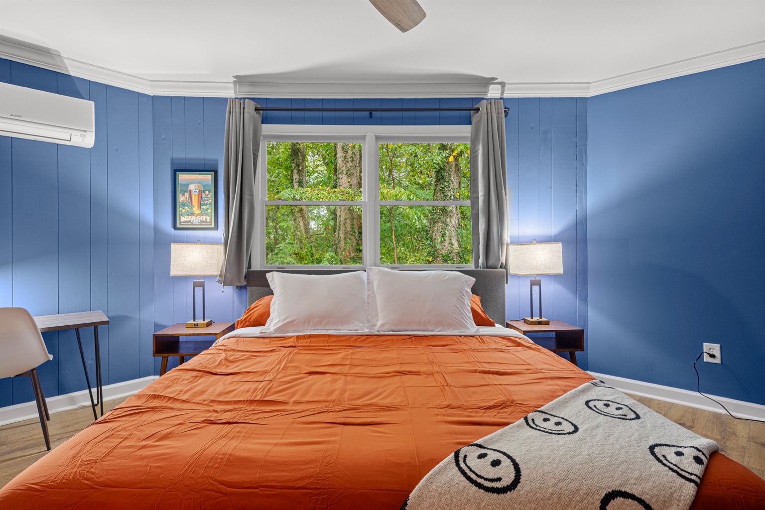 The Nonagon, a nine-sided structure, reflects the unique vibe that is Asheville. Our home was designed with your comfort in mind, and with each room decorated with art reflecting the local culture, you'll feel right at home in Asheville from the moment you step inside.